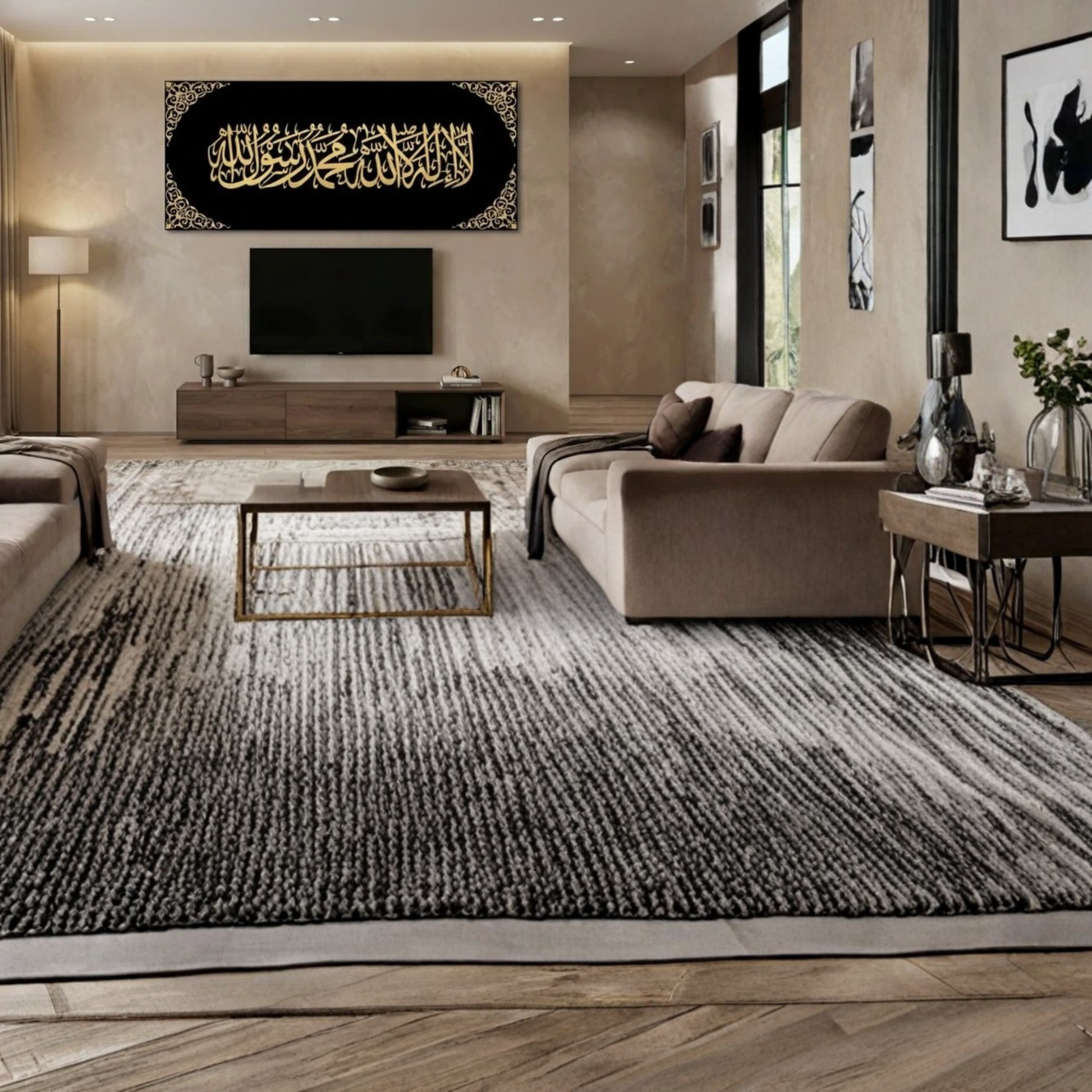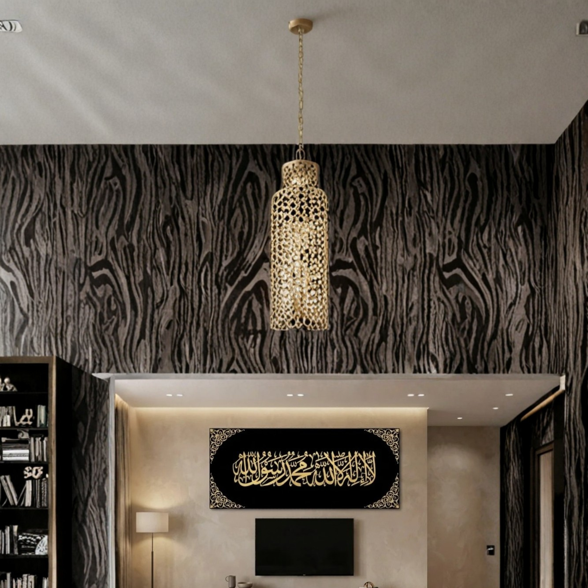 LA ILAHA ILLALLAH Frame Elevate your space with this thoughtfully crafted Islamic calligraphy frame, featuring the profound declaration of faith. The elegant design captures the essence of this fundamental Islamic principle with refined typography and balanced composition. Perfect for homes, offices, or prayer spaces, this frame serves as a meaningful reminder of spiritual devotion. Crafted with attention to detail, it complements both traditional and contemporary interiors while fostering a serene atmosphere. An ideal choice for those seeking to express their faith through tasteful décor.